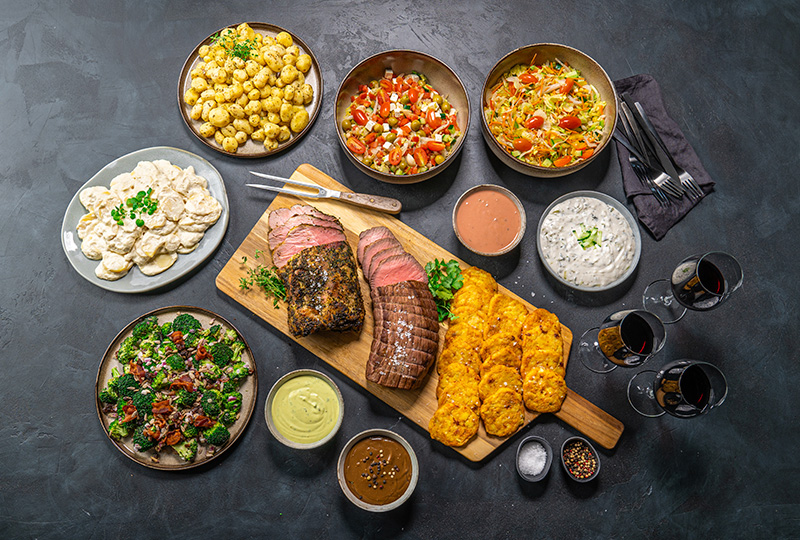 Når du bestiller mad ud af huset på fra Løvbjerg, vil vi gerne gøre det så let som muligt for dig, så du får du altid en tilberedningsguide med, når du modtager maden. I disse guides er det beskrevet hvordan maden skal opvarmes eller steges, både metoden, hvilken temperatur og hvor længe. Vores dygtige slagtere og delikassemedarbejdere har selv både beskrevet og afprøvet disse metoder – og vi lover at de sidder lige i skabet, så du nemt får tilberedt maden til perfektion for dig og dine gæster. Og vi lover dig også, at de har haft fokus på at gøre det nemt for dig – er der fx noget der skal i ovnen, så ankommer det i beholdere, der bare kan komme direkte i ovnen.